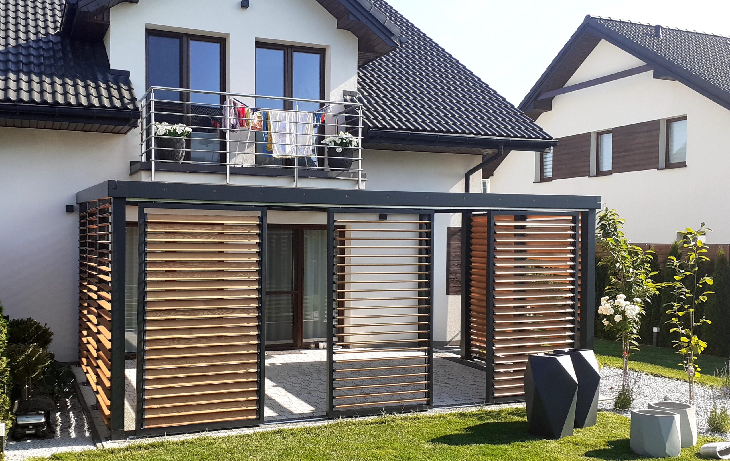 Kompletny zestaw ogrodowych żaluzji o szerokości 119 cm pozwala na stworzenie efektywnej osłony tarasowej lub ogrodowej. W zestawie znajdują się drewniane deski, prowadnice oraz niezbędne elementy montażowe, umożliwiające łatwą instalację. Surowe drewno wymaga impregnacji lub olejowania, aby zachować trwałość i naturalny wygląd.